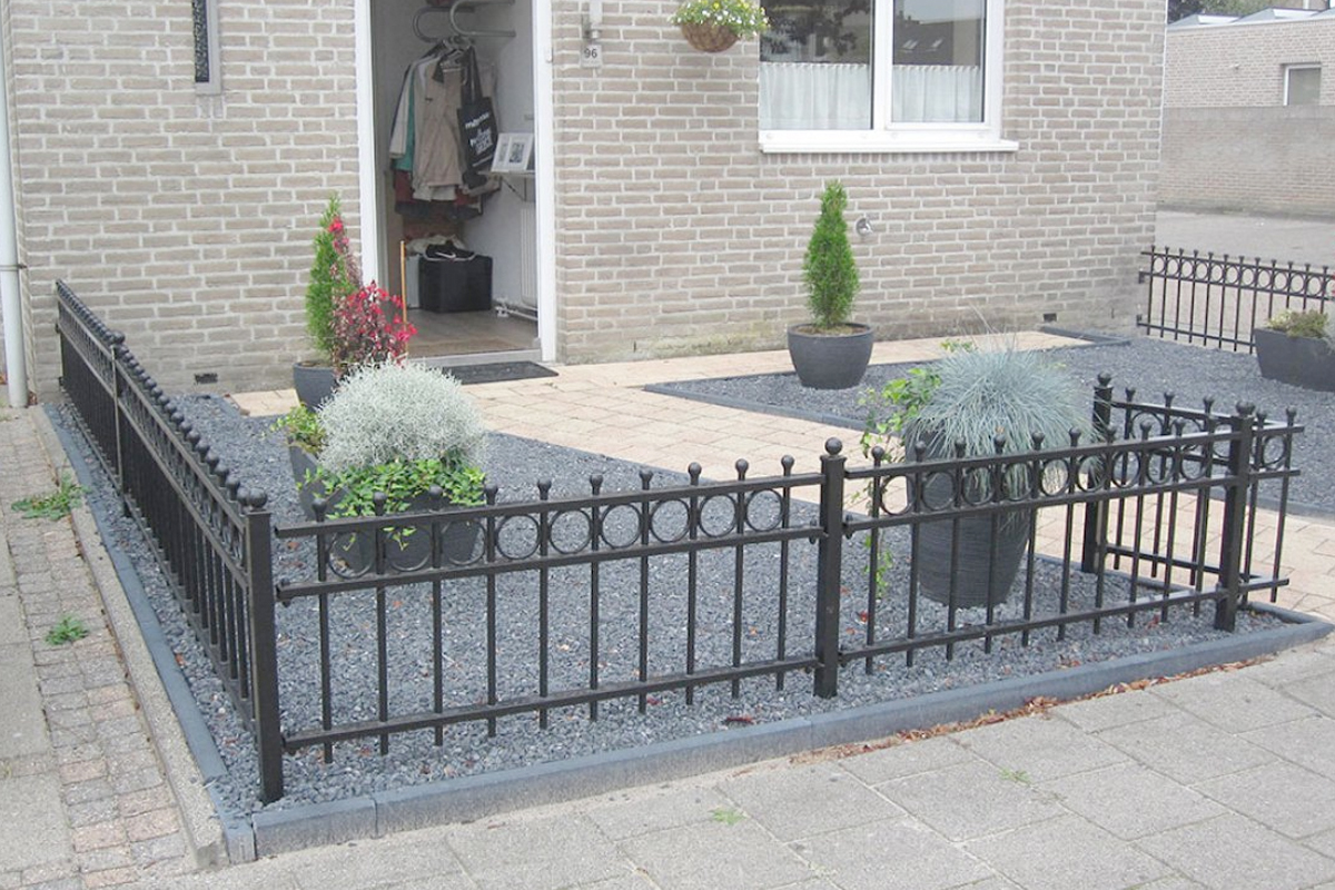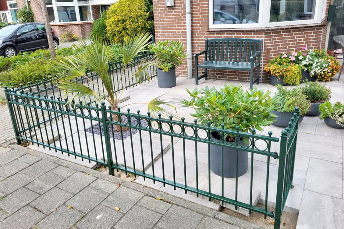 Het sierhekwerk model Appelscha is vervaardigd uit stevige kokers van 40×20 mm, met daartussen spijlen van Ø 16 mm. Deze solide constructie zorgt voor een lange levensduur en weerstand tegen diverse weersomstandigheden. Wat dit model echt uniek maakt, zijn de decoratieve stalen cirkels tussen de spijlen en de bolletjes op zowel de spijlen als de palen. Deze verfijnde details geven het hekwerk een klassieke en sierlijke uitstraling, waardoor het perfect past bij zowel moderne als traditionele woningen.