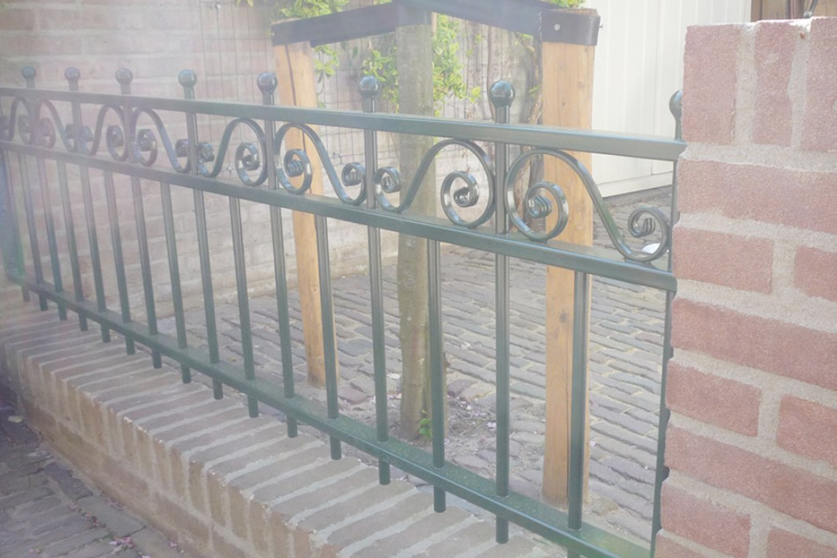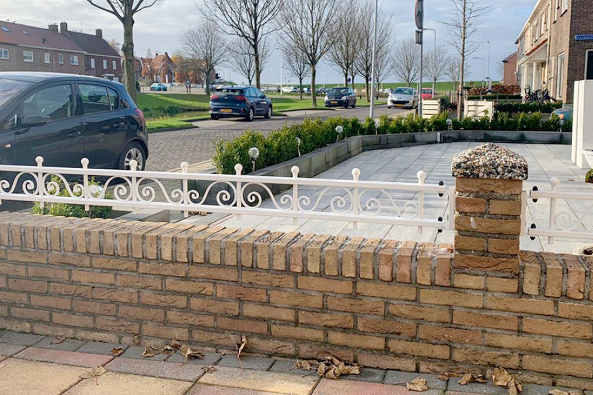 Het sierhekwerk model Bolsward is vervaardigd van stevige kokers van 40×20 mm met spijlen van Ø 16 mm ertussen. Deze solide constructie zorgt voor langdurige stabiliteit en weerbestendigheid, ideaal voor diverse weersomstandigheden. Wat dit model onderscheidt zijn de krullen aan de bovenzijde van het hekwerk en de decoratieve bollen op de spijlen. Deze artistieke details voegen niet alleen charme en karakter toe, maar versterken ook de esthetiek van je buitenruimte.