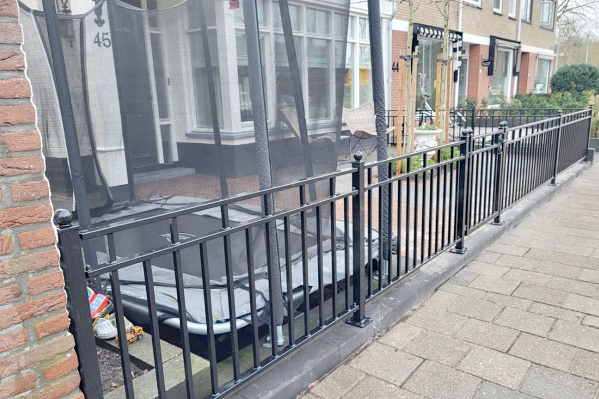 Het sierhekwerk model Oosterwolde is vervaardigd uit robuuste kokers van 40×20 mm, met daartussen spijlen van Ø 16 mm. Dit zorgt voor een solide constructie die bestand is tegen diverse weersomstandigheden. Een opvallend kenmerk van dit model is de dubbele bovenligger, die niet alleen extra stevigheid biedt, maar ook bijdraagt aan een verfijnde en elegante uitstraling. Dit hekwerk is niet alleen functioneel, maar ook een sieraad voor je buitenruimte.